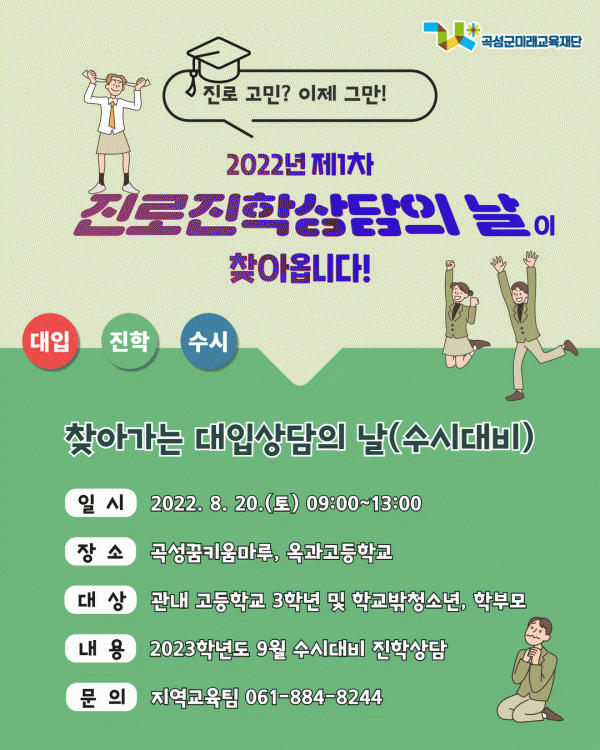 [¹Ìµð¾îÀü³² Á¦°¥´ëÁ¾ ±âÀÚ] °î¼º±º¹Ì·¡±³À°Àç´ÜÀº °î¼º±º Áö¿ª û¼Ò³âµé¿¡°Ô ¸ÂÃãÇü ÁøÇÐÁ¤º¸¸¦ Á¦°øÇϱâ À§ÇØ Á¦1Â÷ ã¾Æ°¡´Â Áø·Î¡¤ÁøÇлó´ãÀ» ¿î¿µÇÑ´Ù°í 26ÀÏ ¹àÇû´Ù. 8¿ù 20ÀÏ °î¼º²ÞŰ¿ò¸¶·ç¿Í ¿Á°ú°íµîÇб³¿¡¼ ¿¸®´Â Á¦1Â÷¡¦
