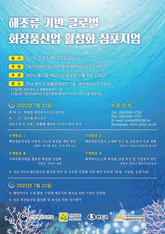 [¹Ìµð¾îÀü³² Á¦°¥´ëÁ¾ ±âÀÚ] Àü³²¹ÙÀÌ¿À»ê¾÷ÁøÈï¿ø ÇØ¾ç¹ÙÀÌ¿À¿¬±¸¼¾ÅÍ¿¡¼´Â 7¿ù 21ÀÏ~22ÀÏ ¾çÀϰ£ ¿Ïµµ±º »ýȰ¹®È¼¾ÅÍ¿¡¼ ¡®ÇØÁ¶·ù ±â¹Ý ±Û·Î¹ú ÈÀåǰ »ê¾÷ Ȱ¼ºÈ¸¦ À§ÇÑ ½ÉÆ÷Áö¾ö¡¯À» °³ÃÖÇÑ´Ù. À̹ø ½ÉÆ÷Áö¾öÀº Àü³² µµ³»ÀÇ Ç³¡¦