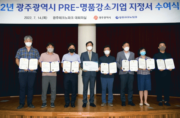 [¹Ìµð¾îÀü³² Á¦°¥´ëÁ¾ ±âÀÚ] ±¤ÁÖ±¤¿ª½Ã´Â Áö¿ª °æÁ¦¸¦ °ßÀÎÇÒ ¡®2022³â ¿¹ºñ-¸íǰ°¼Ò±â¾÷¡¯ 7°÷À» ¼±Á¤Çϰí 14ÀÏ ±¤ÁÖÅ×Å©³ëÆÄÅ©¿¡¼ ÁöÁ¤¼¸¦ ¼ö¿©Çß´Ù. À̹ø¿¡ ¼±Á¤µÈ ±â¾÷Àº Á¦6±â·Î ¢ßµ§¹ÙÀÌ¿À, ¢ß¸àÆÛ½º, ¢ß½Â±¤, ¢ßÀüÁøÆ¼Æ¼¿¡½º¡¦