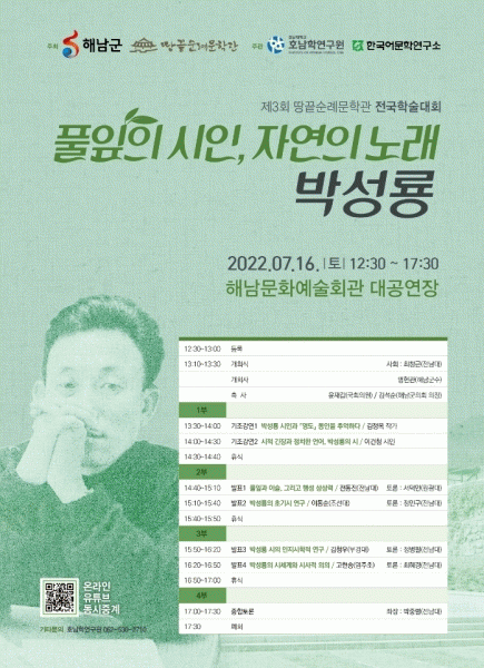 [¹Ìµð¾îÀü³² À±º¸Çö ±âÀÚ] ÇØ³²±º ¶¥³¡¼ø·Ê¹®Çаü¿¡¼¡®Ç®ÀÙÀÇ ½ÃÀÎ, ÀÚ¿¬ÀÇ ³ë·¡ ¹Ú¼º·æ¡¯À» ÁÖÁ¦·Î Àü±¹Çмú´ëȸ°¡ ¿¸°´Ù. ¿À´Â 7¿ù 16ÀÏ ÇØ³²¹®È¿¹¼úȸ°ü ´ë°ø¿¬Àå¿¡¼ ¿¸®´Â Çмú´ëȸ´Â ÇØ³²ÀÇ ´ëÇ¥ ¹®ÀÎÀÌÀÚ Çѱ¹ ¼Á¤½ÃÀÇ »õ·Î¡¦