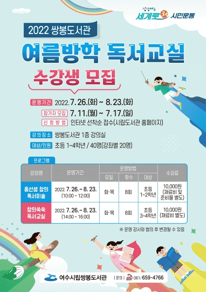 [¹Ìµð¾îÀü³² ÀüÇü¼º ±âÀÚ] ¿©¼ö½Ã¸³½ÖºÀµµ¼°üÀÌ ¿©¸§¹æÇÐ ±â°£ ¾î¸°À̵éÀÇ µ¶¼´É·Â Çâ»óÀ» À§ÇÑ ¡®¿©¸§¹æÇÐ µ¶¼±³½Ç¡¯À» ¿î¿µÇÑ´Ù. »çȸÀû °Å¸®µÎ±â°¡ Àü¸é ÇØÁ¦µÊ¿¡ µû¶ó ¾î¸°À̵éÀÌ Á÷Á¢ µµ¼°üÀ» ¹æ¹®ÇØ Ä£±¸µé°ú Åä·ÐÇÏ°í ¼±»ý´Ô¡¦