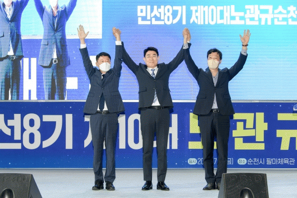 [¹Ìµð¾îÀü³² ÀÓ¼º¿Ï ±âÀÚ] Á¦10´ë ³ë°ü±Ô ¼øÃµ½ÃÀåÀÌ 7¿ù 1ÀÏ ¿ÀÀü 10½Ã ¼øÃµÆÈ¸¶Ã¼À°°ü¿¡¼ ÃëÀÓ½ÄÀ» °®°í ¹Î¼±8±âÀÇ ÈûÂù Ãâ¹ßÀ» ¾Ë·È´Ù. À̳¯ ÃëÀÓ½ÄÀº °¢°è°¢Ãþ Àλç¿Í ½Ã¹ÎÀ» ÃÊûÇÑ Ã¹ °ø½Ä Çà»ç·Î ³ë°ü±Ô ½ÃÀåÀÌ °Á¶ÇÑ ÈÇÕÀÇ ¶æ¡¦