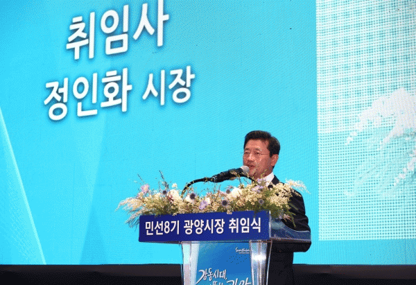 [¹Ìµð¾îÀü³² ÀÓ¼º¿Ï ±âÀÚ] Á¤ÀÎÈ ±¤¾ç½ÃÀåÀÌ 7¿ù 1ÀÏ ±¤¾ç½Ç³»Ã¼À°°ü¿¡¼ ÃëÀÓ½ÄÀ» °®°í ¹Î¼± 8±â ±¤¾ç½ÃÀåÀ¸·Î ù¹ßÀ» ³»µðµ±´Ù. À̳¯ ÃëÀÓ½ÄÀº ±¹È¸ÀÇ¿ø, ½ÃÀÇ¿ø, ±â°ü»çȸ´ÜüÀå, ¾ð·ÐÀÎ µî°ú ¾î¸°À̺ÎÅÍ ³ëÀο¡ À̸£±â±îÁö ½Ã¹Î 1,¡¦