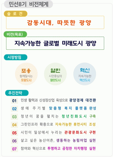 [¹Ìµð¾îÀü³² ÀÓ¼º¿Ï ±âÀÚ] ±¤¾ç½Ã°¡ ¿À´Â 7¿ù 1ÀÏ Ãâ¹üÇÏ´Â ¹Î¼± 8±âÀÇ ½½·Î°Ç°ú ½ÃÁ¤¸ñÇ¥¸¦ ´ãÀº »õ·Î¿î ºñÀüü°è¸¦ È®Á¤Çß´Ù. È®Á¤µÈ ½½·Î°ÇÀº ¡®°¨µ¿½Ã´ë, µû¶æÇÑ ±¤¾ç¡¯ÀÌ¸ç ½ÃÁ¤¸ñÇ¥´Â ¡®Áö¼Ó °¡´ÉÇÑ ±Û·Î¹ú ¹Ì·¡µµ½Ã ±¤¾ç¡¯ÀÌ´Ù. ¡¦