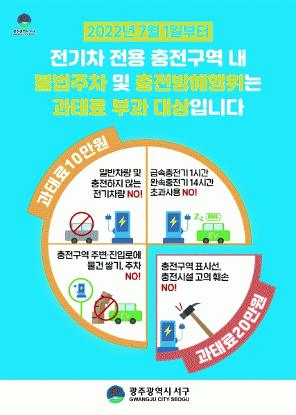 [¹Ìµð¾îÀü³² ±èÁ¤¿ì ±âÀÚ] ±¤ÁÖ ¼±¸°¡ ¿À´Â 7¿ù 1ÀϺÎÅÍ ¸ðµç Àü±âÂ÷ ÃæÀü±¸¿ª ³» ºÒ¹ýÁÖÂ÷¿Í ÃæÀüÀ» ¹æÇØÇÏ´Â ÇàÀ§¿¡ ´ëÇÑ ´Ü¼ÓÀ» º»°ÝÈÇÑ´Ù. ¡®È¯°æÄ£ÈÀû ÀÚµ¿Â÷ÀÇ °³¹ß ¹× º¸±Þ ÃËÁø¿¡ °üÇÑ ¹ý·ü¡¯ ¹× °°Àº ¹ý ½ÃÇà·É¿¡¼ Á¤ÇÑ Ãæ¡¦