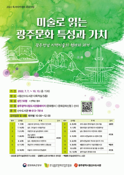 [¹Ìµð¾îÀü³² Á¦°¥´ëÁ¾ ±âÀÚ] ±¤ÁÖ±¤¿ª½Ã¸³»ê¼öµµ¼°üÀº ±¤ÁÖ¡¤Àü³²ÀÇ ¹Ì¼ú¿¡ ´ëÇØ ¾Ë¾Æº¸´Â µ¶¼¾ÆÄ«µ¥¹Ì°Á ¡®¹Ì¼ú·Î Àд ±¤ÁÖ¹®È Ư¼º°ú °¡Ä¡¡¯¸¦ ¿î¿µÇÑ´Ù. À̹ø °Á´ ¹®ÈüÀ°°ü±¤ºÎ°¡ ÁÖÃÖÇϰí Çѱ¹ÃâÆÇ¹®È»ê¾÷ÁøÈï¿øÀÌ ÁÖ°ü¡¦