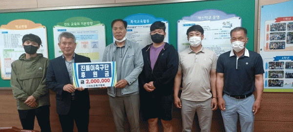 [¹Ìµð¾îÀü³² Á¦°¥´ëÁ¾ ±âÀÚ] Áøµµ±ºÃ౸Çùȸ°¡ ÃÖ±Ù ÁøµµÃʵîÇб³ Áøµ¹ÀÌ Ã౸´Ü°ú 4°³ Ã౸ Ŭ·´¿¡ ÈÄ¿ø±Ý 600¸¸¿øÀ» Àü´ÞÇß´Ù. ¹Ú¾ï¼ö ȸÀåÀº 4°³ Ã౸ Ŭ·´¿¡ 100¸¸¿ø¾¿ ÃÑ 400¸¸¿øÀÇ ÈÄ¿ø±ÝÀ» Àü´ÞÇÏ¸ç µ¿È£ÀÎ ÈÇÕ°ú ¸ÚÁø Ȱ¾àÀ» ´ç¡¦