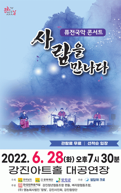 [¹Ìµð¾îÀü³² Á¦°¥´ëÁ¾ ±âÀÚ] °Áø¾ÆÆ®È¦Àº ¡®¹®È°¡ ÀÖ´Â ³¯¡¯À» ¸ÂÀÌÇØ ¿À´Â 28ÀÏ ¿ÀÈÄ 7½Ã 30ºÐ ´ë°ø¿¬Àå¿¡¼ ¡®»ç¶÷À» ¸¸³ª´Ù¡¯¸¦ ÁÖÁ¦·Î Ç»Àü ±¹¾Ç ÄܼƮ¸¦ ÁøÇàÇÑ´Ù. À̹ø °ø¿¬Àº »ç¶÷ÀÇ º»¼º°ú µû¶æÇÔ, ²Þ°ú Èñ¸ÁÀ» ÁÖÁ¦·Î ÀÌÁÖ¡¦