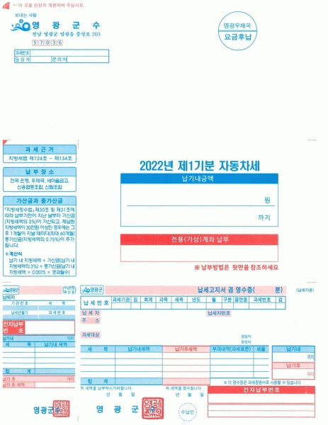 [¹Ìµð¾îÀü³² Á¦°¥´ëÁ¾ ±âÀÚ] ¿µ±¤±ºÀº 6¿ù 1ÀÏ ±âÁØÀ¸·Î °ü³» µî·ÏµÈ ÀÚµ¿Â÷, ÀÌ·ûÂ÷, °Ç¼³±â°èÀÇ ¼ÒÀ¯ÀÚ¸¦ ´ë»óÀ¸·Î Á¦1±âºÐ ÀÚµ¿Â÷¼¼ 1¸¸9,654°Ç¿¡ 21¾ï 7õ 9¹é¸¸¿øÀ» ºÎ°úÇß´Ù°í ¹àÇû´Ù. ³³ºÎ±âÇÑÀº 6¿ù 30ÀϱîÁöÀ̸ç Àü±¹ ±ÝÀ¶±â°ü¡¦