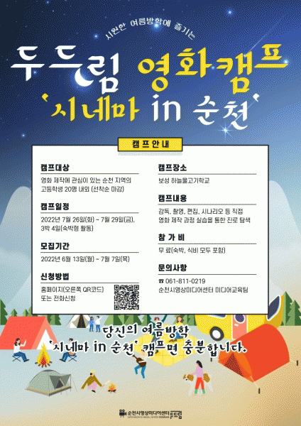 [¹Ìµð¾îÀü³² ÀÓ¼º¿Ï ±âÀÚ] ¼øÃµ½Ã¿µ»ó¹Ìµð¾î¼¾ÅÍ µÎµå¸²Àº ¼øÃµÁö¿ªÀÇ °íµîÇлýÀ» ´ë»óÀ¸·Î ¿µÈ Á¦ÀÛ Ä·ÇÁ ¡®½Ã³×¸¶ in ¼øÃµ¡¯À» ÁøÇàÇÑ´Ù. ¡®½Ã³×¸¶ in ¼øÃµ¡¯Àº 7¿ù 26ÀϺÎÅÍ 29ÀϱîÁö 3¹Ú 4Àϰ£ º¸¼º Çϴù°°í±âÇб³¿¡¼ ÁøÇàµÇ´Â ¡¦