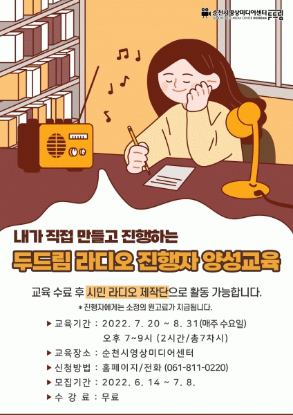 [¹Ìµð¾îÀü³² ÀÓ¼º¿Ï ±âÀÚ] ¼øÃµ½Ã¿µ»ó¹Ìµð¾î¼¾ÅÍ µÎµå¸²Àº Áö¿ª¹ÎÀÇ À̾߱⸦ ´Ù·ç´Â ¶óµð¿À ¹æ¼ÛÀ» ¾Ë±â ½±°Ô ¹è¿ì´Â ¡®µÎµå¸² ¶óµð¿À ÁøÇàÀÚ ¾ç¼º±³À°¡¯À» ÃßÁøÇÑ´Ù. ¡®µÎµå¸² ¶óµð¿À ÁøÇàÀÚ ¾ç¼º±³À°¡¯Àº 7¿ù 20ÀϺÎÅÍ 8¿ù 31ÀϱîÁö ¡¦