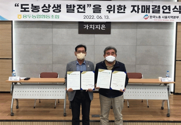 [¹Ìµð¾îÀü³² Á¦°¥´ëÁ¾ ±âÀÚ] ÀåÈﱺ ¿ëµÎ³óÇùÀº Áö³ 13ÀÏ Çѱ¹³ëÃÑ ¼¿ïÁö¿ªº»ºÎ¿Í µµ³ó»ó»ý ÀڸŰῬÀ» ü°áÇß´Ù°í ¹àÇû´Ù. À̳¯ ü°á½Ä¿¡´Â ¿ëµÎ³óÇù ¹éÂùÀÎ Á¶ÇÕÀå°ú Çѱ¹³ëÃÑ ¼¿ïÁö¿ªº»ºÎ ±è±âö ÀÇÀåÀ» ºñ·ÔÇØ ¾ç ±â°üÀÇ ÀÓÁ÷¿ø ¡¦