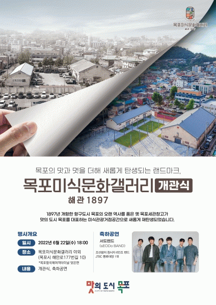 [¹Ìµð¾îÀü³² °í±Ô¼® ±âÀÚ] ¸ñÆ÷½Ã°¡ ¡®¸ñÆ÷¹Ì½Ä¹®È°¶·¯¸® ÇØ°ü1897-¡¯À» ¼±º¸ÀδÙ. ½Ã´Â ¿À´Â 22ÀÏ ¿ÀÈÄ 6½Ã ¸ñÆ÷¹Ì½Ä¹®È°¶·¯¸® ¾ß¿Ü ÁÖ¹«´ë¿¡¼ °³°ü½ÄÀ» °³ÃÖÇÒ ¿¹Á¤ÀÌ´Ù. °³°ü½Ä¿¡¼´Â °³°ü ÆÛÆ÷¸Õ½º¸¦ ºñ·ÔÇØ JTBC ¡®Ç³·ù´ëÀ塯¿¡¡¦