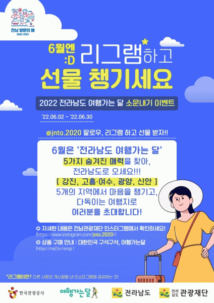 [¹Ìµð¾îÀü³² Á¦°¥´ëÁ¾ ±âÀÚ] Àü¶ó³²µµ¿Í Àü¶ó³²µµ°ü±¤Àç´ÜÀº µµ³» °ü±¤¼Òºñ ÃËÁø ¹× °ü±¤½ÃÀå ȸº¹À» À§ÇØ ¹®Ã¼ºÎ¿Í °øµ¿À¸·Î 30ÀϱîÁö ÇÑ ´Þ°£ ¡®2022 ¿©Çà°¡´Â ´Þ¡¯ Ä·ÆäÀÎÀ» ÃßÁøÇÑ´Ù°í ¹àÇû´Ù. ÀÌ ±â°£ Çѱ¹°ü±¤°ø»ç ±¤ÁÖÀü³²Áö»ç¡¦