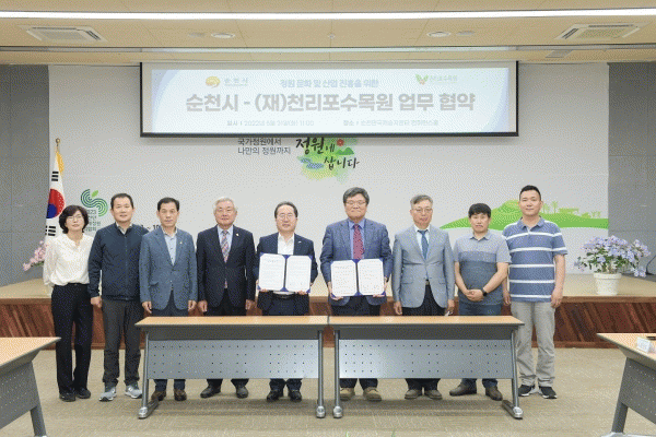 [¹Ìµð¾îÀü³² ÀÓ¼º¿Ï ±âÀÚ] ¼øÃµ½Ã¿Í õ¸®Æ÷¼ö¸ñ¿øÀº 5¿ù 31ÀÏ ´ëÇѹα¹ÀÇ Áö¼Ó°¡´ÉÇÑ Á¤¿ø ¹®È ¹× »ê¾÷ ÁøÈïÀ» À§ÇÑ °øµ¿Çù·Â ¾÷¹«Çù¾àÀ» ü°áÇß´Ù. À̳¯ Çù¾àÀ» ÅëÇØ ¾ç ±â°üÀº ½Ä¹°À¯ÀüÀÚÀÇ ¼öÁý°ú ±³·ù, °øµ¿ ¿¬±¸ ¹× ±â¼ú Áö¿ø°ú ÀÚ¡¦