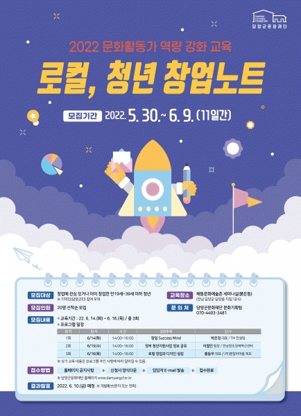 [¹Ìµð¾îÀü³² Á¦°¥´ëÁ¾ ±âÀÚ] ´ã¾ç±º¹®ÈÀç´ÜÀÌ Áö¿ª û³ââ¾÷ÀÚ¸¦ Áö¿øÇϱâ À§ÇØ Ã¢¾÷ Àü¹®°¡ Ư° ¡®·ÎÄÃ, û³ââ¾÷³ëÆ®¡¯ Âü¿©ÀÚ¸¦ ´ÙÀ½´Þ 9ÀϱîÁö ¸ðÁýÇÑ´Ù. À̹ø ±³À°Àº â¾÷¿¡ °ü½ÉÀÌ Àְųª ÀÌ¹Ì Ã¢¾÷ÇÑ ¸¸ 19¼¼ ÀÌ»ó 39¼¼ ÀÌÇÏ ¡¦