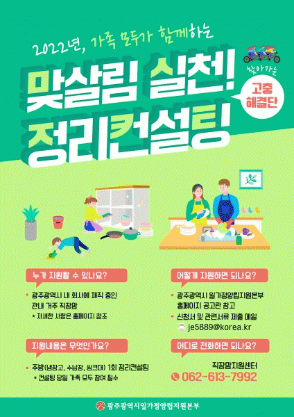 [¹Ìµð¾îÀü³² Á¦°¥´ëÁ¾ ±âÀÚ] ±¤ÁÖ±¤¿ª½Ã Àϰ¡Á¤¾ç¸³Áö¿øº»ºÎ´Â °¡Á·ÀÌ ¸ðµÎ ÇÔ²² »ì¸²ÇÏ´Â ¸Â»ì¸² ¹®È È®»ê¸¦ À§ÇØ Ã£¾Æ°¡´Â ¡®¸Â»ì¸²½Çõ Á¤¸®ÄÁ¼³ÆÃ¡¯À» ¹«·á·Î Áö¿øÇÑ´Ù. ¸Â»ì¸²½Çõ Á¤¸®ÄÁ¼³ÆÃÀº ÁÖ¹æ °ø°£¿¡¼ ³ÃÀå°í ¼ö³³Àå, ¾ÅÅ©¡¦