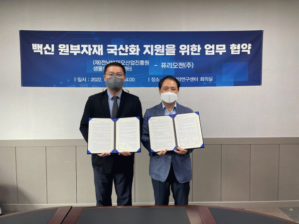 [¹Ìµð¾îÀü³² Á¦°¥´ëÁ¾ ±âÀÚ] Àü³²¹ÙÀÌ¿À»ê¾÷ÁøÈï¿ø »ý¹°ÀǾ࿬±¸¼¾ÅÍ´Â 19ÀÏ Ç»¸®¿ÀÁ¨°ú ¹é½Å ¿øºÎÀÚÀç ±¹»êÈ ¾÷¹«Çù¾àÀ» Çß´Ù°í ¹àÇû´Ù. Çù¾à¿¡ µû¶ó »ý¹°ÀǾ࿬±¸¼¾ÅÍ¿Í Ç»¸®¿ÀÁ¨Àº ¹ÙÀÌ¿ÀÀǾàǰÀÎ ¹é½Å Á¤Á¦°øÁ¤ÀÇ ÇÙ½É ¿øÀÚÀç Å©·Î¡¦
