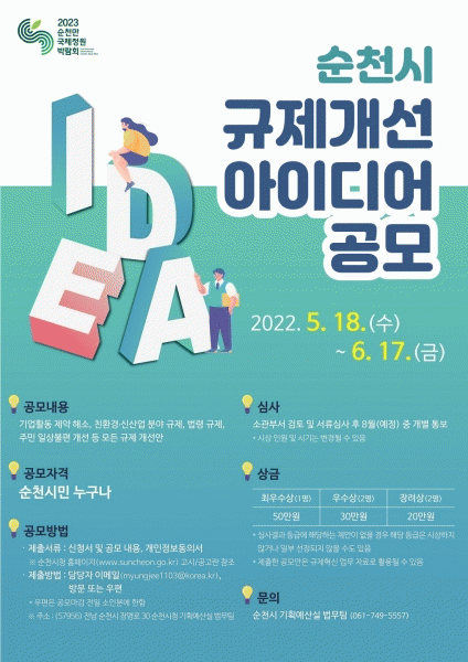 [¹Ìµð¾îÀü³² ÀÓ¼º¿Ï ±âÀÚ] ¼øÃµ½Ã°¡ ÀÏ»ó»ýȰ¿¡¼ °Þ´Â °¢Á¾ ºÒÇÕ¸®ÇÑ ±ÔÁ¦¿Í ±â¾÷ Ȱµ¿¿¡ °É¸²µ¹ÀÌ µÇ´Â ±ÔÁ¦¸¦ ½Ã¹Î°ú ÇÔ²² ¹ß±¼ÇÏ°í °³¼±Çϱâ À§ÇØ ¿À´Â 6¿ù 17ÀϱîÁö ¡®¼øÃµ½Ã ±ÔÁ¦°³¼± ¾ÆÀ̵ð¾î¡¯¸¦ °ø¸ðÇÑ´Ù. À̹ø °ø¸ð´ë»óÀº ±â¡¦