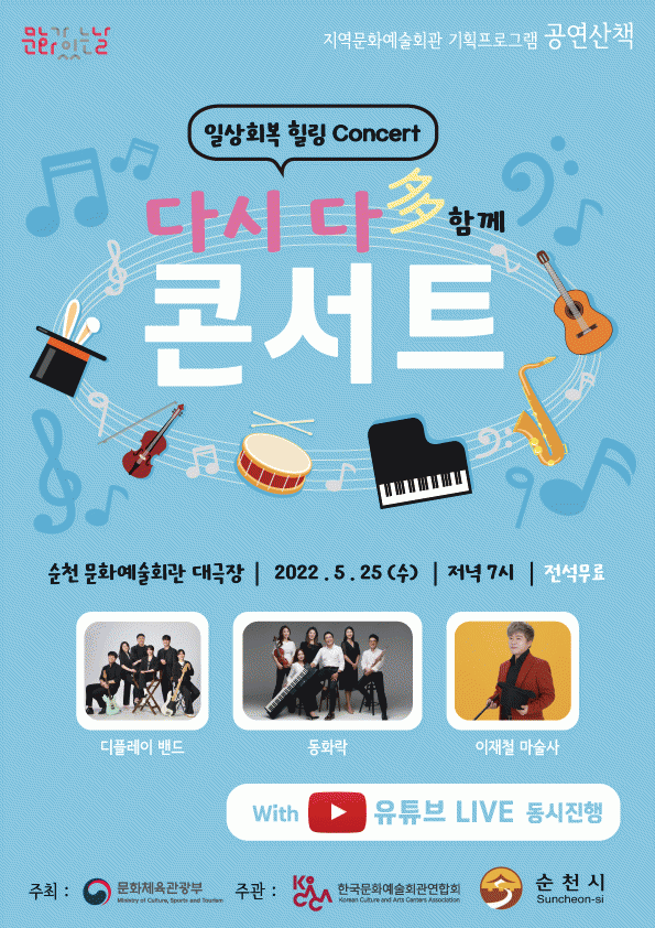 [¹Ìµð¾îÀü³² ÀÓ¼º¿Ï ±âÀÚ] ¼øÃµ½Ã´Â 5¿ùºÎÅÍ 10¿ù±îÁö ¹®È°¡ ÀÖ´Â ³¯ °ø¿¬»êÃ¥ ¡®´Ù½Ã ´ÙÇÔ²² ÄܼƮ¡¯¸¦ °³ÃÖÇÑ´Ù. À۳⿡ À̾î 2³â ¿¬¼Ó Çѱ¹¹®È¿¹¼úȸ°ü¿¬ÇÕȸ °ø¸ð »ç¾÷¿¡ ¼±Á¤µÇ¾î ¸Å¿ù ¸¶Áö¸· ÁÖ ¼ö¿äÀÏ ¡®¹®È°¡ ÀÖ´Â ³¯¡¯¿¡ Áö¡¦