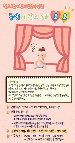 [¹Ìµð¾îÀü³² ÀÓ¼º¿Ï ±âÀÚ] ±¤¾ç½Ã¾î¸°À̺¸À°Àç´ÜÀº Áö¿ª ³» º¸À°½Ã¼³ ¾î¸°À̵éÀ» ´ë»óÀ¸·Î 6~8¿ù¿¡ °ÉÃÄ 2Â÷ ¾î¸°ÀÌ ¹®È°ø¿¬ Áö¿ø»ç¾÷ÀÎ ¡®Ã£¾Æ°¡´Â ÀÎÇü±Ø °ø¿¬¡¯À» ½Ç½ÃÇÑ´Ù. 2Â÷·Î ½Ç½ÃÇÏ´Â ¡®Ã£¾Æ°¡´Â ÀÎÇü±Ø °ø¿¬¡¯Àº ½ÅûÇÑ Áö¿ª¡¦