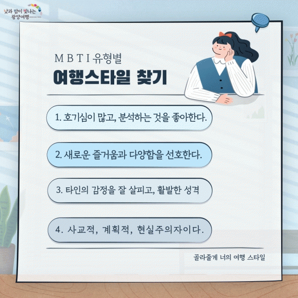 [¹Ìµð¾îÀü³² ÀÓ¼º¿Ï ±âÀÚ] ±¤¾ç½Ã°¡ ¡®¼º°ÝÀ¯Çüº° °ü±¤Áö ¿î¿µ¡¯À» ÅëÇØ ¼¼´ë¸¦ ¾Æ¿ì¸£´Â °ü±¤Áö¸¦ ÃßõÇÑ´Ù. ¼º°ÝÀ¯Çüº° °Ë»ç°á°ú¸¦ ÅëÇØ º»ÀÎÀÇ ¼º°ÝÀ» ±¸º°ÇÑ µÚ À¯Çü¿¡ ¸Â´Â °ü±¤Áö ¹æ¹®À» ÅëÇØ ¸ÂÃãÇü °ü±¤À» Áñ±æ ¼ö ÀÖµµ·Ï ¿î¿µÇÑ¡¦
