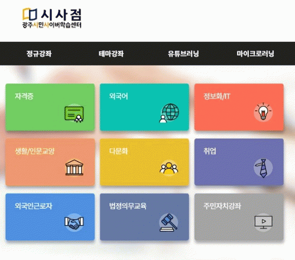 [¹Ìµð¾îÀü³² Á¦°¥´ëÁ¾ ±âÀÚ] ±¤ÁÖ±¤¿ª½Ã´Â ¿Â¶óÀÎ Æò»ýÇнÀ Ç÷§ÆûÀÎ ±¤ÁֽùλçÀ̹öÇнÀ¼¾ÅÍ ¡®±¤ÁֽûçÁ¡¡¯À» µðÁöÅÐ, ÀçÅ×Å© µî ÃֽŠÇнÀ Æ®·»µå¸¦ ¹Ý¿µÇØ Àü¸é °³ÆíÇß´Ù. Á¤±Ô °Á·δ ÀÚ°ÝÁõ, ¿Ü±¹¾î, Á¤º¸È, Ãë¾÷, Àι®¡¤±³¾ç¡¦