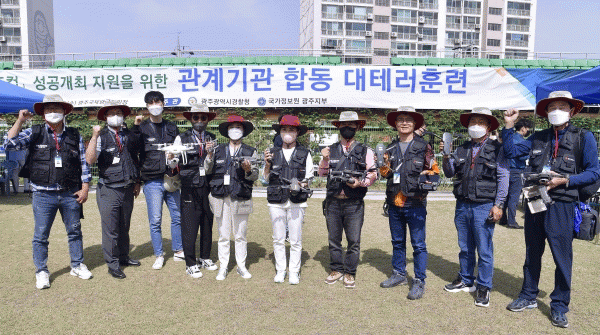 [¹Ìµð¾îÀü³² Á¦°¥´ëÁ¾ ±âÀÚ] ±¤ÁÖ±¤¿ª½Ã µå·Ð¿î¿ë´ÜÀº 27ÀÏ ±¤ÁÖ±¹Á¦¾ç±Ã°æ±âÀå¿¡¼ 14°³ ±â°ü ¹× ´Üü¿Í Æø¹ß¹°, È»ý¹æ, ±ºÁýµå·Ð µîÀ» ÀÌ¿ëÇÑ º¹ÇÕÅ×·¯´ëÀÀ ÇÕµ¿ÈƷÿ¡ Âü°¡Çß´Ù. À̹ø ÈÆ·ÃÀº 5¿ù17ÀϺÎÅÍ 22ÀϱîÁö 27°³±¹ 360¿©¸íÀÌ¡¦