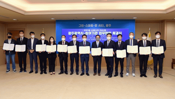 [¹Ìµð¾îÀü³² Á¦°¥´ëÁ¾ ±âÀÚ] ±¤ÁÖ±¤¿ª½Ã´Â 27ÀÏ ½Ãû ºñÁî´Ï½º·ë¿¡¼ µ¿±¸Ã», ±¤ÁÖµµ½Ã°ø»ç, ÇÑȽýºÅÛÄÁ¼Ò½Ã¾ö µî 12°³ ±â°ü°ú ±¤Áֽà Áö¿ª°ÅÁ¡ ½º¸¶Æ®½ÃƼ Á¶¼º»ç¾÷ÀÇ ¼º°øÀûÀÎ ÃßÁøÀ» À§ÇÑ ¾÷¹«Çù¾àÀ» ü°áÇß´Ù. Çù¾à½Ä¿¡´Â ¹®¿µÈÆ¡¦