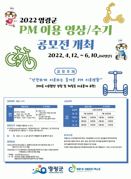 [¹Ìµð¾îÀü³² Á¦°¥´ëÁ¾ ±âÀÚ] ¿µ±¤±ºÀº ¡®¾ÈÀüÇÏ°Ô ÀÌ¿ëÇÏ´Â Áñ°Å¿î PM ÀÌ¿ë »ýȰ¡¯À̶õ ÁÖÁ¦·Î 6¿ù 10ÀϱîÁö ¡®PM ÀÌ¿ë ¿µ»ó/¼ö±â °ø¸ðÀü¡¯ À» °³ÃÖÇÑ´Ù°í ¹àÇû´Ù. ¿µ»ó ºÎ¹®Àº ¿µ»óÄ«¸Þ¶ó·Î Á÷Á¢ ÃÔ¿µÇÑ µ¿¿µ»óÀ¸·Î 30ÃÊ¿¡¼ 3ºÐÀ̳», ¡¦