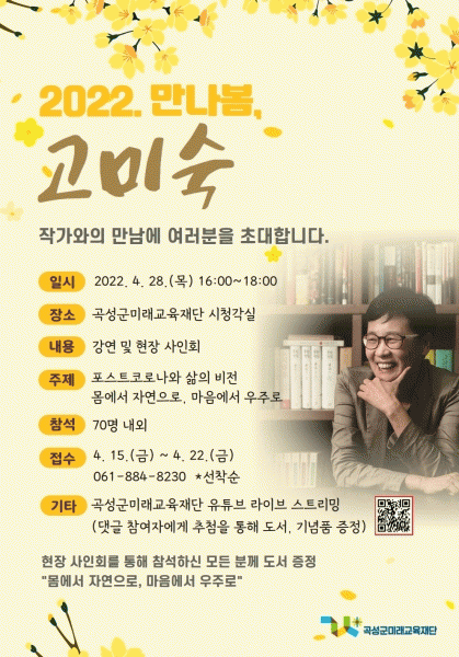[¹Ìµð¾îÀü³² Á¦°¥´ëÁ¾ ±âÀÚ] °î¼º±º¹Ì·¡±³À°Àç´Ü¿¡¼´Â ¿À´Â 4¿ù 28ÀÏ ¿ÀÈÄ 4½Ã ¹Ì·¡±³À°Àç´Ü ½Ãû°¢½Ç¿¡¼ °í¹Ì¼÷ ÀÛ°¡ ÃÊû °¿¬À» °³ÃÖÇÑ´Ù°í ¹àÇû´Ù. °í¹Ì¼÷ ÀÛ°¡´Â µ¿¾çöÇаú ¼¾çöÇÐÀ» ³Ñ³ªµå´Â °íÀüÆò·Ð°¡ÀÌÀÚ ¡®¿ÇÏÀϱ⠿ôÀ½¡¦