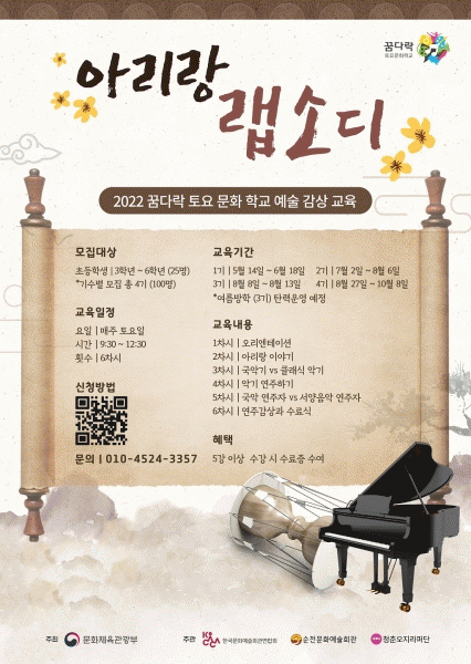 [¹Ìµð¾îÀü³² ÀÓ¼º¿Ï ±âÀÚ] ¼øÃµ½Ã´Â ¿À´Â 5¿ùºÎÅÍ 10¿ù±îÁö û¼Ò³âÀ» ´ë»óÀ¸·Î ¡®2022³â ²Þ´Ù¶ô Åä¿ä¹®ÈÇб³ ¿¹¼ú°¨»ó±³À°¡¯ ÇÁ·Î±×·¥À» ¿î¿µÇÑ´Ù. À̹ø »ç¾÷Àº ¹®ÈüÀ°°ü±¤ºÎ°¡ ÁÖÃÖÇϰí Çѱ¹¹®È¿¹¼úȸ°ü¿¬ÇÕȸ°¡ ÁÖ°üÇÏ´Â »ç¾÷À¸·Î¡¦