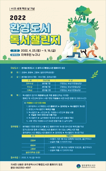 [¹Ìµð¾îÀü³² ±èÁ¤¿ì ±âÀÚ] ±¤ÁÖ ¼±¸°¡ ¼¼°è Ã¥ÀÇ ³¯À» ¸ÂÀÌÇØ ¿À´Â 23ÀϺÎÅÍ 9¿ù 16ÀϱîÁö ȯ°æ Ä£È µ¶¼ÇÁ·Î±×·¥ ¡®È¯°æµµ¼ µ¶¼Ã§¸°Áö¡¯¸¦ ÁøÇàÇÑ´Ù. ±âÈĺ¯È, ¹Ì¼¼¸ÕÁö µî ȯ°æ ¹®Á¦°¡ ´ëµÎµÇ°í ÀÖ´Â »óȲ¿¡¼ ȯ°æ Ä£È µ¶¼ÇÁ¡¦