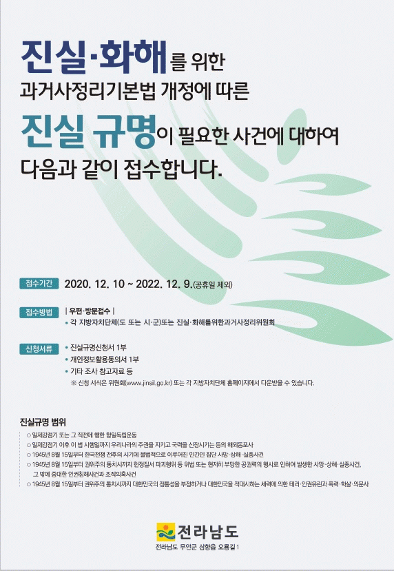[¹Ìµð¾îÀü³² ¹Úº¹»ê ±âÀÚ] Àü¶ó³²µµ ³ªÁֽô ¹Ý¹ÎÁÖÀû¡¤¹ÝÀαÇÀû, ºÎ´çÇÑ °ø±Ç·Â Çà»ç¿¡ µû¸¥ ÇÇÇØÀÚÀÇ ¸í¿¹È¸º¹, Áø»ó±Ô¸í µîÀ» À§ÇÑ ¡®°ú°Å»ç Áø½Ç±Ô¸í¡¯ ½ÅûÀ» ¿À´Â 12¿ù 9ÀϱîÁö Á¢¼ö¹Þ´Â´Ù°í 15ÀÏ ¹àÇû´Ù. °ú°Å»ç Áø½Ç±Ô¸íÀº ¡®¡¦