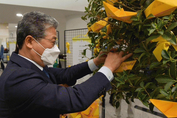 [¹Ìµð¾îÀü³² ±èÁ¤¿ì ±âÀÚ] ±¤ÁÖ ¼±¸°¡ 4¿ù 16ÀÏ ¼¼¿ùÈ£ Âü»ç 8Áֱ⸦ ¸Â¾Æ ¼¼¿ùÈ£Âü»ç°¡Á·ÇùÀÇȸ ÃøÀÇ ½½·Î°ÇÀΡ®±â¾ï, ¾à¼Ó, Ã¥ÀÓ¡¯À» ³»¼¼¿ö ±¸Ã» 1Ãþ ·Îºñ¿¡ Ã߸ð°üÀ» ¸¶·ÃÇϰí 16ÀϱîÁö ¿î¿µÇÑ´Ù°í ¹àÇû´Ù. ¼±¸´Â Áö³ 13ÀÏ ¿ÀÀü¡¦