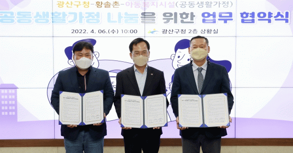 [¹Ìµð¾îÀü³² ±èÁ¤¿ì ±âÀÚ] ±¤ÁÖ ±¤»ê±¸°¡ 6ÀÏ È²¼ÖÃ̰ú Áö¿ª ¾Æµ¿º¹Áö½Ã¼³ ¾ÆÀ̵éÀÇ °ÇÀüÇÑ ¼ºÀåÀ» Áö¿øÇϱâ À§ÇÑ ³ª´® ¾÷¹«Çù¾àÀ» ü°áÇß´Ù. ±è»ïÈ£ ±¤»ê±¸Ã»Àå, ȲÀdz² Ȳ¼ÖÃÌ ´ëÇ¥ÀÌ»ç, ±â¿µÃ¶ ¾ÖÀÚ¶÷°øµ¿»ýȰ°¡Á¤ ½Ã¼³ÀåÀº À̳¯ ±¸Ã»¡¦