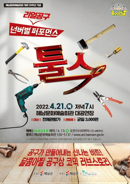 [¹Ìµð¾îÀü³² À±º¸Çö ±âÀÚ] ÇØ³²±ºÀº ÇØ³²¹®È¿¹¼úȸ°ü °³°ü 20Áֳ⠱â³ä ±âȹ°ø¿¬ ¡®Åø½º tools¡¯¸¦ ¿À´Â 4¿ù 21ÀÏ ¿ÀÈÄ 7½Ã °³ÃÖÇÑ´Ù. ´ë±¸¿Í ¼¿ï ´ëÇзο¡¼ ¸¸³ª º¼ ¼ö ÀÖ¾ú´ø ¡®Åø½º tools¡¯´Â °ø±¸ °ñ¸ñÀ» ¹è°æÀ¸·Î ´Ù¾çÇÑ °ø±¸¸¦¡¦
