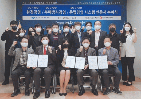 [¹Ìµð¾îÀü³² ÀüÇü¼º ±âÀÚ] ¿©¼ö½Ãµµ½Ã°ü¸®°ø´ÜÀº Çѱ¹°æ¿µÀÎÁõ¿øÀÇ ½É»ç¸¦ ¹Þ¾Æ ȯ°æ°æ¿µ½Ã½ºÅÛ, ºÎÆÐ¹æÁö°æ¿µ½Ã½ºÅÛ, Áعý°æ¿µ½Ã½ºÅÛ µî 3°³ ÀÎÁõÀ» ÃëµæÇϰí 4¿ù5ÀÏ ÀÎÁõ¼ ¼ö¿©½ÄÀ» ÁøÇàÇß´Ù. ȯ°æ°æ¿µ½Ã½ºÅÛÀº ±¹Á¦Ç¥ÁØÈ±â±¸¿¡¼ Á¦¡¦