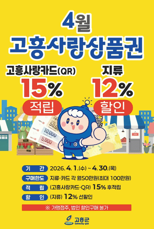 [¹Ìµð¾îÀü³² Á¦°¥´ëÁ¾ ±âÀÚ] °íÈﱺÀº Áö³ 1¿ùºÎÅÍ 3¿ù±îÁö ÁøÇàÇÑ °íÈï»ç¶û»óǰ±Ç Ưº°ÇÒÀÎ Çà»çÀÇ ¶ß°Å¿î ¼º¿ø¿¡ ÈûÀÔ¾î, ¿À´Â 4¿ù 1ÀϺÎÅÍ ÇÑ ´Þ°£ °íÈï»ç¶û»óǰ±Ç ÇÒÀÎ ÇýÅÃÀ» ¿¬Àå ¿î¿µÇÏ¸ç ¹Î»ý°æÁ¦¿¡ ¿Â±â¸¦ ´õÇÑ´Ù. ±º¿¡ µû¸£¸é¡¦