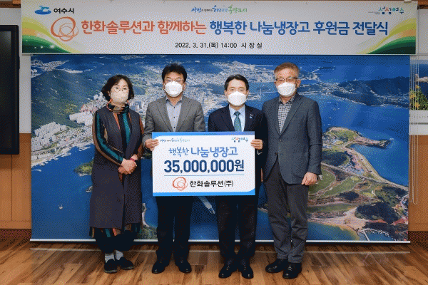 [¹Ìµð¾îÀü³² ÀüÇü¼º ±âÀÚ] ÇÑȼַç¼ÇÀÌ Áö³ 3¿ù 31ÀÏ ¡®Çູ ³ª´® ³ÃÀå°í¡¯ ÈÄ¿ø±Ý 3õ5¹é¸¸¿øÀ» À۳⿡ ÀÌ¾î ¿ÃÇØµµ ¿©¼ö½Ã¿¡ Àü´ÞÇß´Ù. À̳¯ Àü´Þ½Ä¿¡´Â ÇÑȼַç¼Ç ±Ç±â¿µ ºÎ»çÀå, ¿©¼ö½ÃÁö¿ª»çȸº¸ÀåÇùÀÇü À念 À§¿øÀå°ú ½Å¹Ì°æ ¡¦