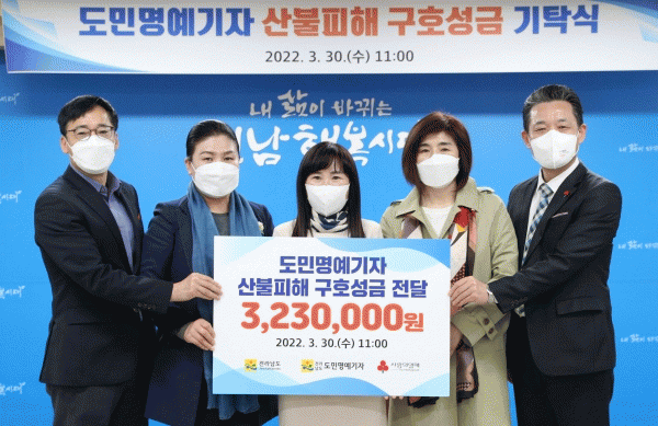 [¹Ìµð¾îÀü³² Á¦°¥´ëÁ¾ ±âÀÚ] Àü¶ó³²µµ µµ¹Î¸í¿¹±âÀÚ´ÜÀÌ °æºÏ ¿ïÁøÁö¿ª »êºÒ ÇÇÇØ º¹±¸¿Í ÀÌÀç¹Î Áö¿øÀ» À§ÇØ Àü³²»çȸº¹Áö°øµ¿¸ð±Ýȸ¿¡ ¼º±Ý 323¸¸¿øÀ» ±âŹÇß´Ù. µµ¹Î¸í¿¹±âÀÚ´ÜÀº »êºÒ·Î »îÀÇ ÅÍÀüÀ» ÀÒ°í »ý°è¸¦ À§Çù¹Þ´Â ÀÌÀç¹ÎÀ» ¡¦
