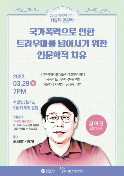 [¹Ìµð¾îÀü³² Á¦°¥´ëÁ¾ ±âÀÚ] ±¤ÁÖ±¤¿ª½Ã´Â 29ÀÏ ¿ÀÈÄ 7½Ã ÀüÀϺôµù 245 9Ãþ ´Ù¸ñÀû °´ç¿¡¼ ±èÀÍÁø °¿ø´ëÇб³ ±³¼ö¸¦ ÃÊÃ»ÇØ 2022³â ù ¹øÂ° ±¤ÁÖÆ®¶ó¿ì¸¶¼¾ÅÍ Ä¡À¯ÀÇ Àι®ÇÐ °¿¬À» ÁøÇàÇÑ´Ù. À̹ø °¿¬Àº ±èÀÍÁø ±³¼ö°¡ ¡®±¹°¡Æø·ÂÀ¸¡¦