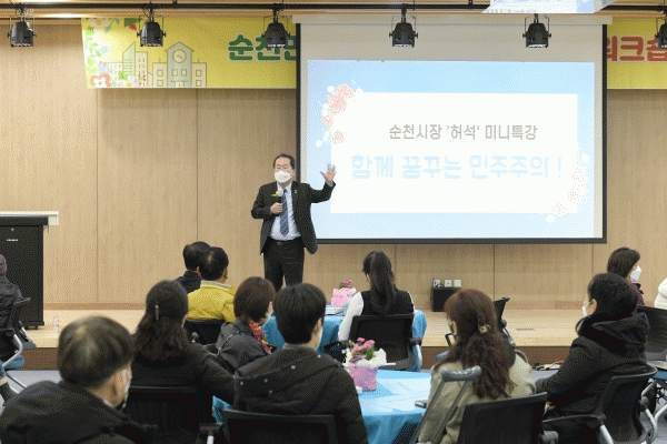 [¹Ìµð¾îÀü³² ÀÓ¼º¿Ï ±âÀÚ] ¼øÃµ½Ã´Â Áö³ 23ÀÏ È£³²È£±¹±â³ä°ü¿¡¼ ¹ÎÁÖÁÖÀÇ ¿ª·® ´õÇϱ⠿öÅ©¼óÀ» °³ÃÖÇß´Ù. ¼º¼÷ÇÑ ½Ã¹ÎÁÖ±ÇÀÇ½Ä ÇÔ¾çÀ» À§ÇØ ½Ã¿¡¼ °³¼³ÇÑ ¼øÃµ¹ÎÁÖÁÖÀÇÇб³¸¦ ¼ö·áÇÑ µ¿Ã¢»ý Áß 60¸íÀÌ Âü¼®ÇÑ À̹ø ¿öÅ©¼óÀº 1ºÎ ¹Î¡¦