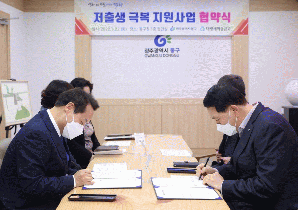 [¹Ìµð¾îÀü³² ±èÁ¤¿ì ±âÀÚ] ±¤ÁÖ µ¿±¸´Â ´ë±¤»õ¸¶À»±Ý°í¿Í ¡®ÀúÃâ»ý ±Øº¹ Áö¿ø»ç¾÷ Çù¾àü°á½Ä¡¯À» °¡Á³´Ù°í 22ÀÏ ¹àÇû´Ù. À̹ø »ç¾÷Àº ´ë±¤»õ¸¶À»±Ý°í¿¡¼ µ¿±¸¿¡ Áֹεî·ÏÀÌ µÅ ÀÖ´Â ¿ÃÇØ 1¿ù1ÀÏ ÀÌÈÄ Ãâ»ý¾Æµ¿¿¡ ´ëÇØ ÇØ´ç ±Ý°í¿¡¼ »ý¡¦