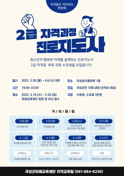 [¹Ìµð¾îÀü³² Á¦°¥´ëÁ¾ ±âÀÚ] °î¼º±º¹Ì·¡±³À°Àç´Ü¿¡¼´Â û¼Ò³âÀÇ ¹Ì·¡ ¼³°è¸¦ µ½´Â Áø·ÎÁöµµ»ç 2±Þ ±³À° Âü¿©ÀÚ¸¦ ¿À´Â 25ÀϱîÁö ¸ðÁýÇÑ´Ù. Áø·ÎÁöµµ»ç Àº ÀÚ³àÀÇ Áø·Î Áöµµ¿¡ ´ëÇÑ ±âº» Áö½ÄÀ» ¾ò°í ÀÚ°ÝÁõ±îÁö ÃëµæÇÒ ¼ö ÀÖ¾î Âü¿©ÀÚ¡¦