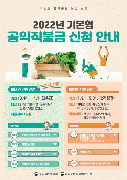 [¹Ìµð¾îÀü³² Á¦°¥´ëÁ¾ ±âÀÚ] Àü¶ó³²µµ´Â ³ó¾÷¡¤³óÃÌÀÇ °øÀͱâ´É ÁõÁø°ú ³ó¾÷ÀÎÀÇ ¼Òµæ¾ÈÁ¤ µµ¸ð¸¦ À§ÇÑ ¡®2022³â ±âº»Çü °øÀÍÁ÷Á¢ÁöºÒ»ç¾÷¡¯ Á¢¼ö¸¦ ¿À´Â 14ÀϺÎÅÍ 5¿ù 31ÀϱîÁö ÇÑ´Ù°í ¹àÇû´Ù. ¿ÃÇØ´Â Äڷγª19 È®»ê µî¿¡ µû¶ó ¿Â¶óÀÎ ¡¦