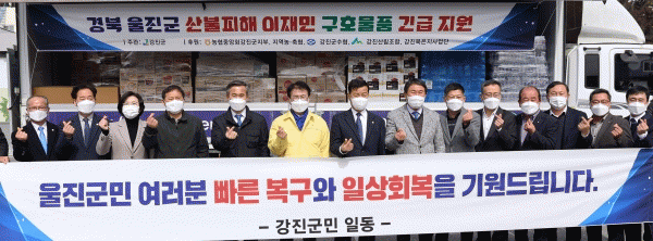[¹Ìµð¾îÀü³² Á¦°¥´ëÁ¾ ±âÀÚ] °Áø±ºÀº °æºÏ ¿ïÁø »êºÒ ÇÇÇØ ÁֹεéÀ» À§ÇØ °Áø ¹¬ÀºÁö¿Í ÇÞ¹Ý µî 2õ 1¹é¸¸¿ø »ó´çÀÇ ±¸È£Ç°À» Áö¿øÇÑ´Ù°í 7ÀÏ ¹àÇû´Ù. ±¸È£¹°Ç°Àº °Áø±ºÀ» ÇʵηΠ³óÇùÁß¾Óȸ°Áø±ºÁöºÎ, °ÁøÃàÇù, °Áø±º»ê¸²Á¶ÇÕ, ¡¦