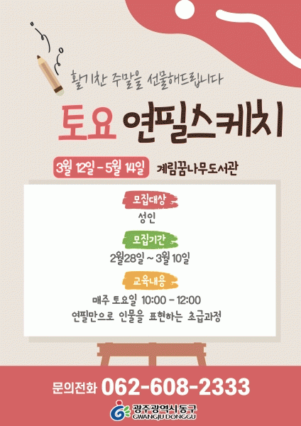 [¹Ìµð¾îÀü³² ±èÁ¤¿ì ±âÀÚ] ±¤ÁÖ µ¿±¸´Â 3¿ù µ¶¼¹®È ÇÁ·Î±×·¥ ¡®¿ì¸®´Â ȯ°æ ÁöÅ´ÀÌ¡¯¿Í ¡®Åä¿ä ¿¬ÇʽºÄÉÄ¡¡® Âü¿©ÀÚ¸¦ ¼±Âø¼øÀ¸·Î ¸ðÁýÇÑ´Ù°í ¹àÇû´Ù. ±âÈÄ¿Í È¯°æ¿À¿°À» ÁÖÁ¦·Î ÇÑ ¡®¿ì¸®´Â ȯ°æ ÁöÅ´ÀÌ¡¯´Â À¯¾Æ¡¤¾Æµ¿ ´ë»ó °Á·Π¡¦