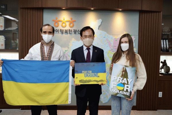 [¹Ìµð¾îÀü³² ±èÁ¤¿ì ±âÀÚ] ±¤ÁÖ ±¤»ê±¸°¡ ÀüÀïÀÇ ¾ÆÇÄÀ» °Þ°í ÀÖ´Â ¿ìÅ©¶óÀ̳ª¸¦ µ½±â À§ÇØ ¹ß ¹þ°í ³ª¼±´Ù. ±è»ïÈ£ ±¤»ê±¸Ã»ÀåÀº 2ÀÏ ¿ÀÀü ±¸Ã»Àå½Ç¿¡¼ ¿ìÅ©¶óÀ̳ª¿¡¼ ¿Â ±¤ÁÖ»õ³¯Çб³ ±³»ç ¾Èµå·¹ÀÌ ¸®Æ®ºñ³ëÇÁ, ±¤»ê±¸ ¿Ü±¹ÀÎÁֹΠ¡¦