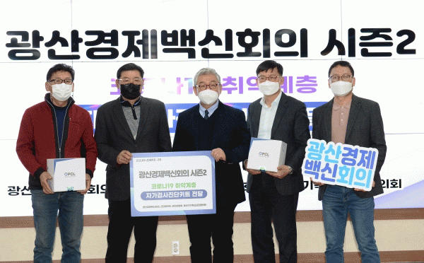 [¹Ìµð¾îÀü³² ±èÁ¤¿ì ±âÀÚ] Äڷγª19 °æÁ¦À§±â ±Øº¹À» À§ÇÑ Áö¿ª°æÁ¦ °Å¹ö³Í½ºÀÎ ±¤»ê°æÁ¦¹é½ÅȸÀǰ¡ Ãë¾à°èÃþÀÇ ¼±Á¦Àû °¨¿°¿¹¹æÀ» À§ÇØ ÀÚ°¡°Ë»ç Áø´ÜŰƮ Áö¿ø¿¡ ³ª¼¹´Ù. ±¤»ê°æÁ¦¹é½ÅȸÀÇ´Â 2ÀÏ¿¡¼ ±¸Ã» 2Ãþ »óȲ½Ç¿¡¼ Àü´Þ½ÄÀ» °®¡¦